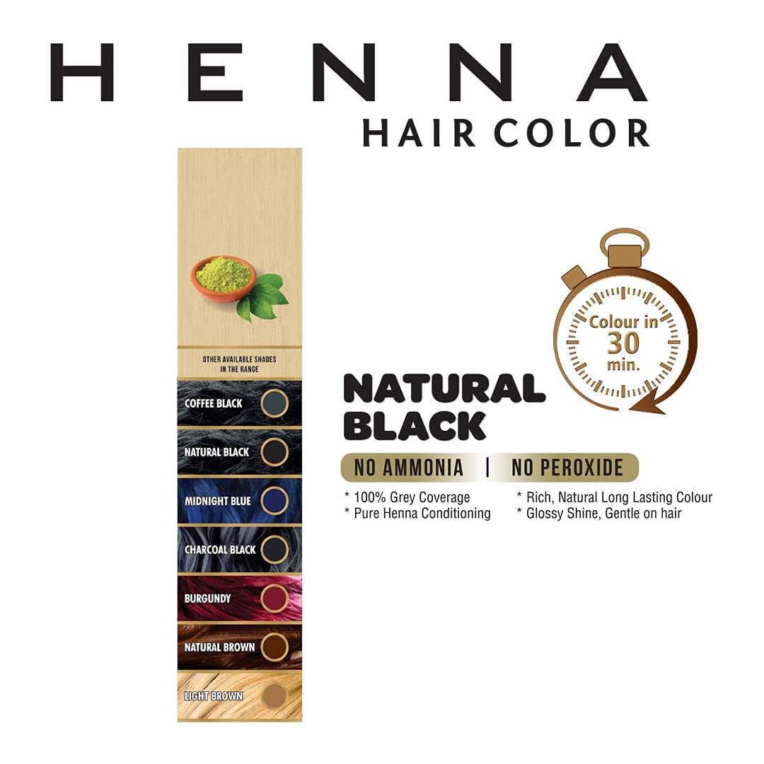 30 Minute Enriched with Herbs Semi Permanent Powder – Harsh Chemical Free Black Hair Dye for Men and Women (Natural Black)