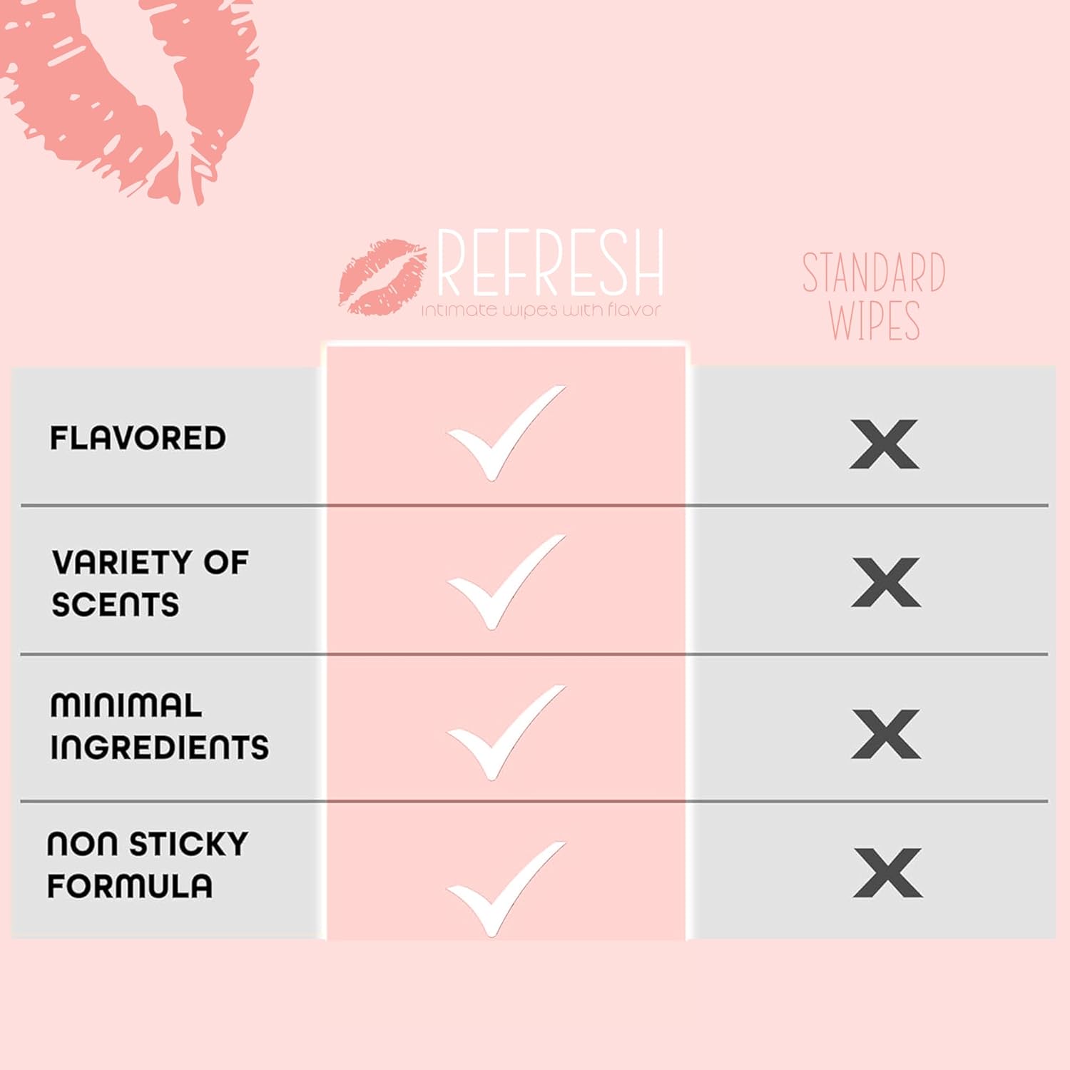 ABSOLUTELY DELICIOUS: Refresh flavored feminine wipes help with both personal hygiene and have a natural flavor that your partner will love!
