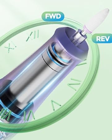 Easy to Use: This shiny acrylic nail drill adopts simple operation design and user-friendly control, it has a glowing knob switch, can easily adjust the speed. The F/R button can switch the rotation direction, which enables any right-handed or left-handed use.The smart LCD screen displays all operating statuses, including rotation speed, pause and rotation direction (at a glance). The DEDNMSCA nail grinder has a base design that provides storage space for the drill bit and handle, keeping your workspace tidy
