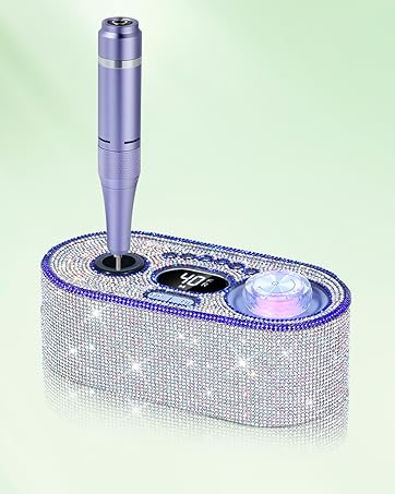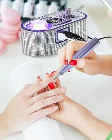 Five-Star Review â Beautiful, Functional, and Worth Every Penny!I recently purchased this nail drill and Iâm beyond impressed! First, the price is amazing for the quality you receive. It looks exactly like the picture absolutely stunning with the bling and vibrant color, which adds a fun and stylish touch to my workspace.Shipping was incredibly fast, and it arrived in perfect condition with no damage. I appreciate that it includes a base to hold the drill, which keeps everything organized and easy to access. The drill itself is very user-friendly, not loud at all, and operates smoothly. I also love that it displays the speed, which is a great feature for precision work.There was a slight smell from the crystals when I first opened the package, but it wasnât overpowering and quickly faded. Whether you’re using it for personal or professional purposes, this drill is a fantastic choice. I would definitely recommend it to anyone looking for a stylish and reliable tool. Five stars from me!