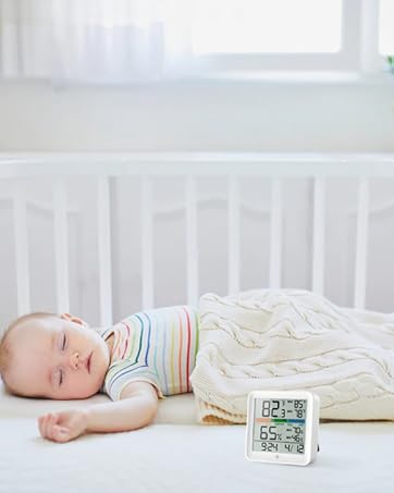【Air Comfort Indicator】Digital moisture meter with humidity indicator bar quickly shows DRY/COMFORT/WET air conditions with a glance. Reminding you to adjust the humidifier or dehumidifier. It is perfect for monitoring your family’s living conditions to create the right environmental state to effectively prevent colds, dry skin, asthma, allergies and more