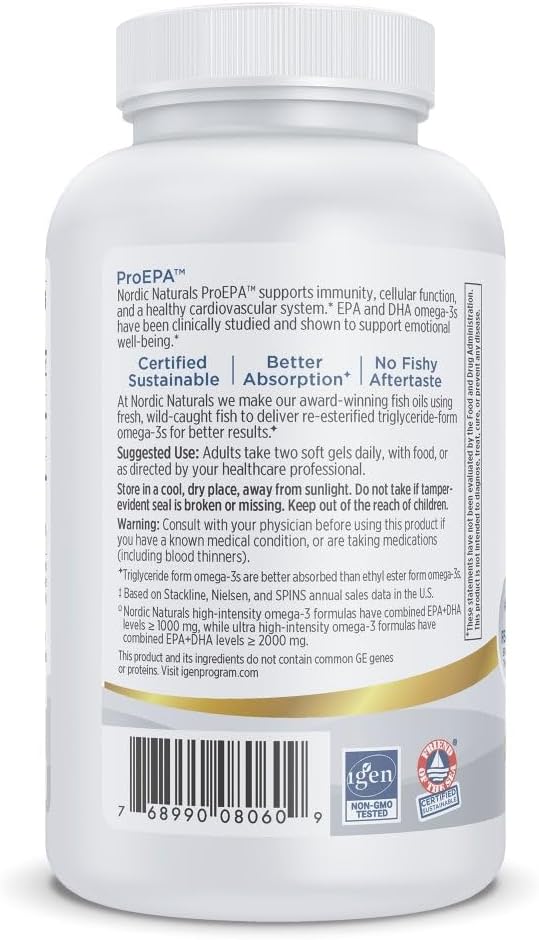 10 reviews for Nordic Naturals ProEPA, Lemon – 120 Soft Gels – 1210 mg Omega-3 – High-Intensity EPA Formula for Healthy Mood, Heart Health & Cellular Function – Non-GMO – 60 Servings