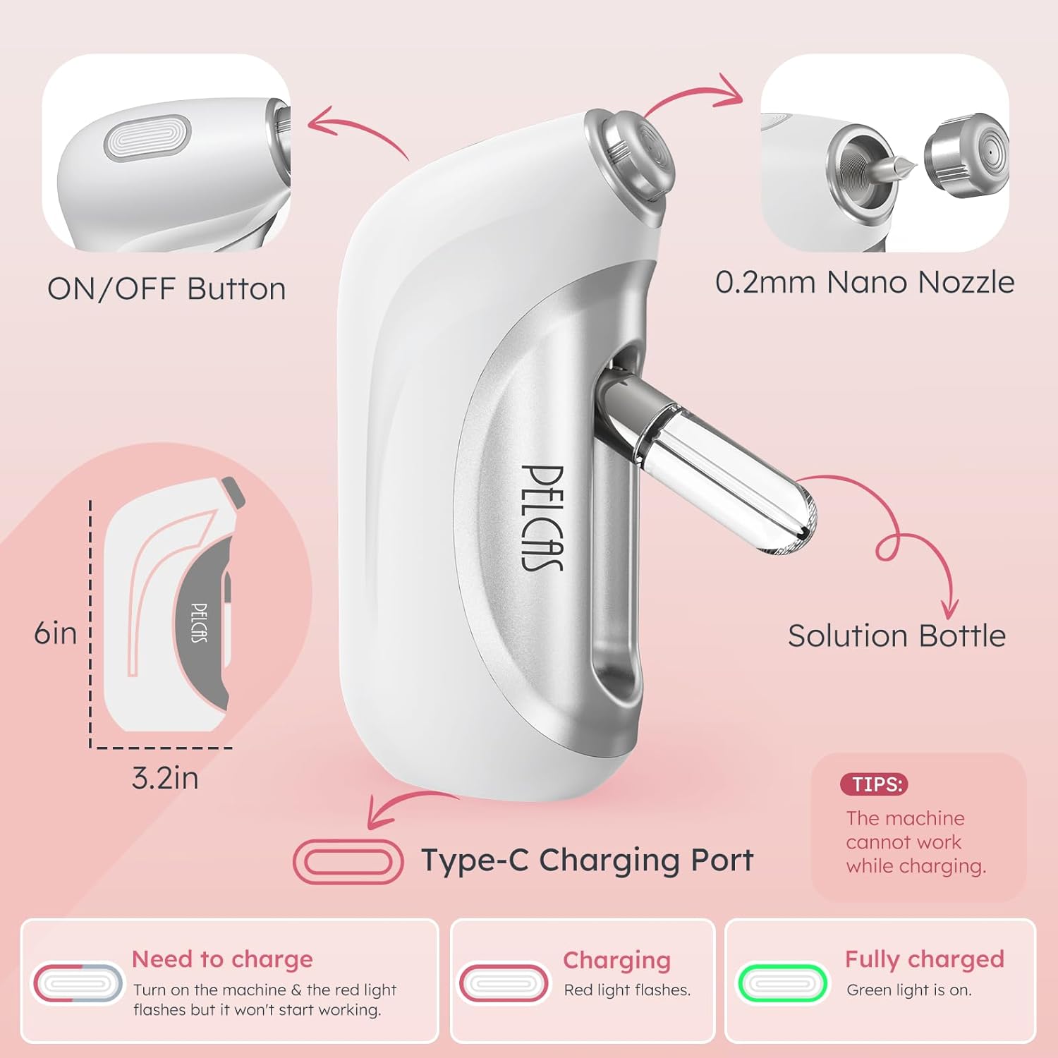 [Great Quality & Service]-Package includes: 1*PELCAS Nano Facial Mister (6*3.2 inches), 3*Solution Bottle, 2*Needle,1*Charging Cable, 1*User Manual. PELCAS provide 24H online reply.
