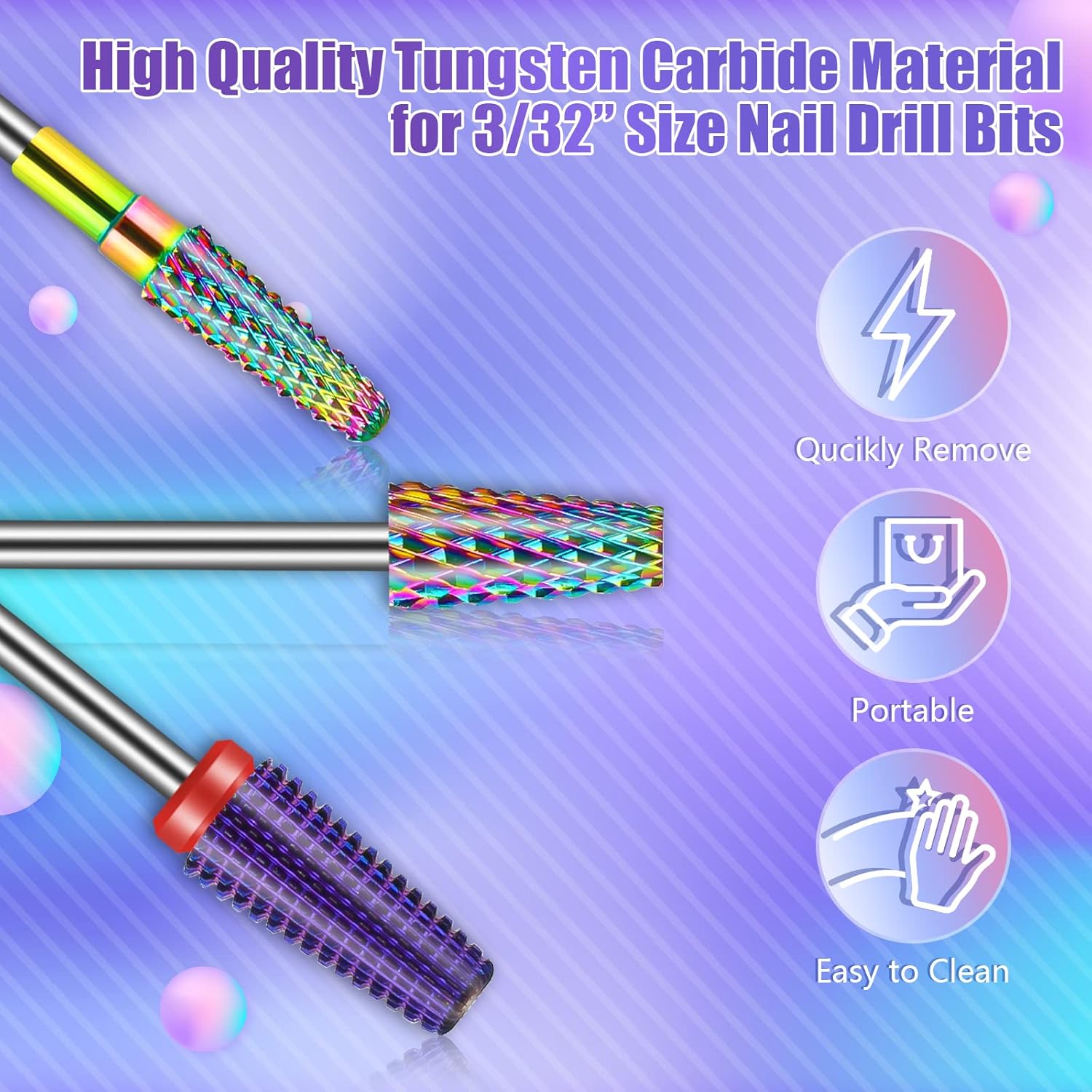 [Upgraded]Depvko 3Pcs Nail Drill Bits Set for Nails 3/32 Inches, 5 in 1 Tapered Barrel and Cone Shape Carbide Nail Drill Bits for Acrylic or Gel Remover